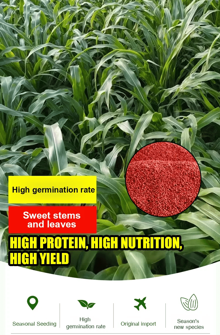 - High Protein Content: Contains 10-14% crude protein in dry matter, which is higher than regular Sudan grass.